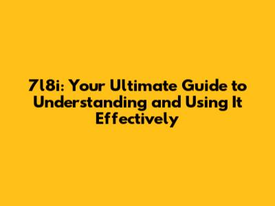7l8i: Your Ultimate Guide to Understanding and Using It Effectively