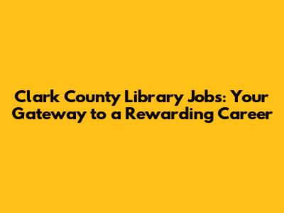 Clark County Library Jobs: Your Guide To Opportunities
