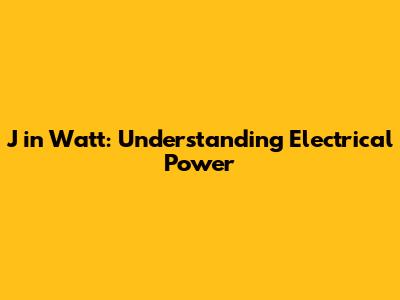 J In Watt Explained: Understanding Electrical Power