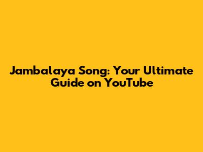 Jambalaya Song: Your Ultimate Guide On YouTube