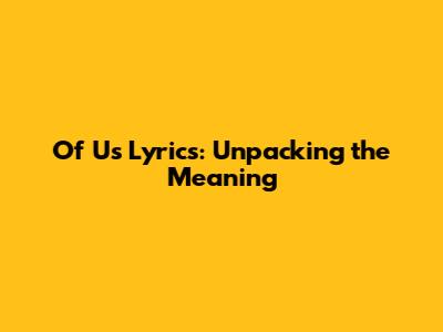 Of Us Lyrics: Unpacking The Meaning