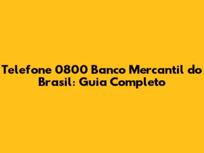 Qual é o número 0800 do Banco Mercantil do Brasil? O número 0800 do Banco Mercantil do Brasil varia dependendo do serviço. Consulte o site oficial ou outros canais de atendimento do banco para obter o número correto para sua necessidade específica.